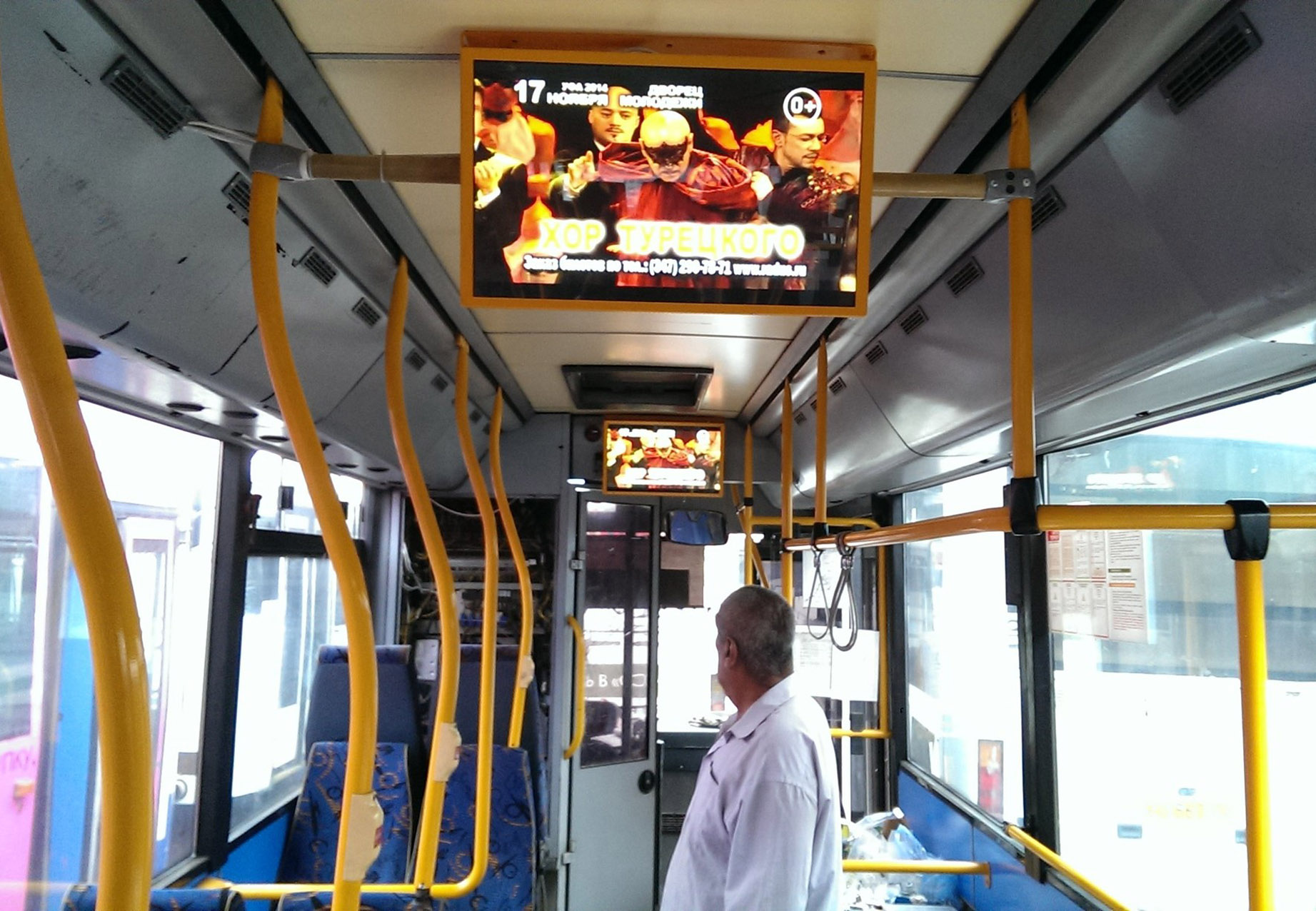 Напомним, что рекламу в автобусах в Черняховске можно разместить как в виде стикера, афиши, бортовой оклейки, так и запустить трансляцию рекламного ролика на установленных в салоне транспортного средства мониторах.