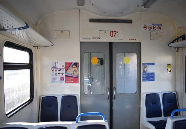 Примеры рекламы в электричках в Черняховске представлены на фото: