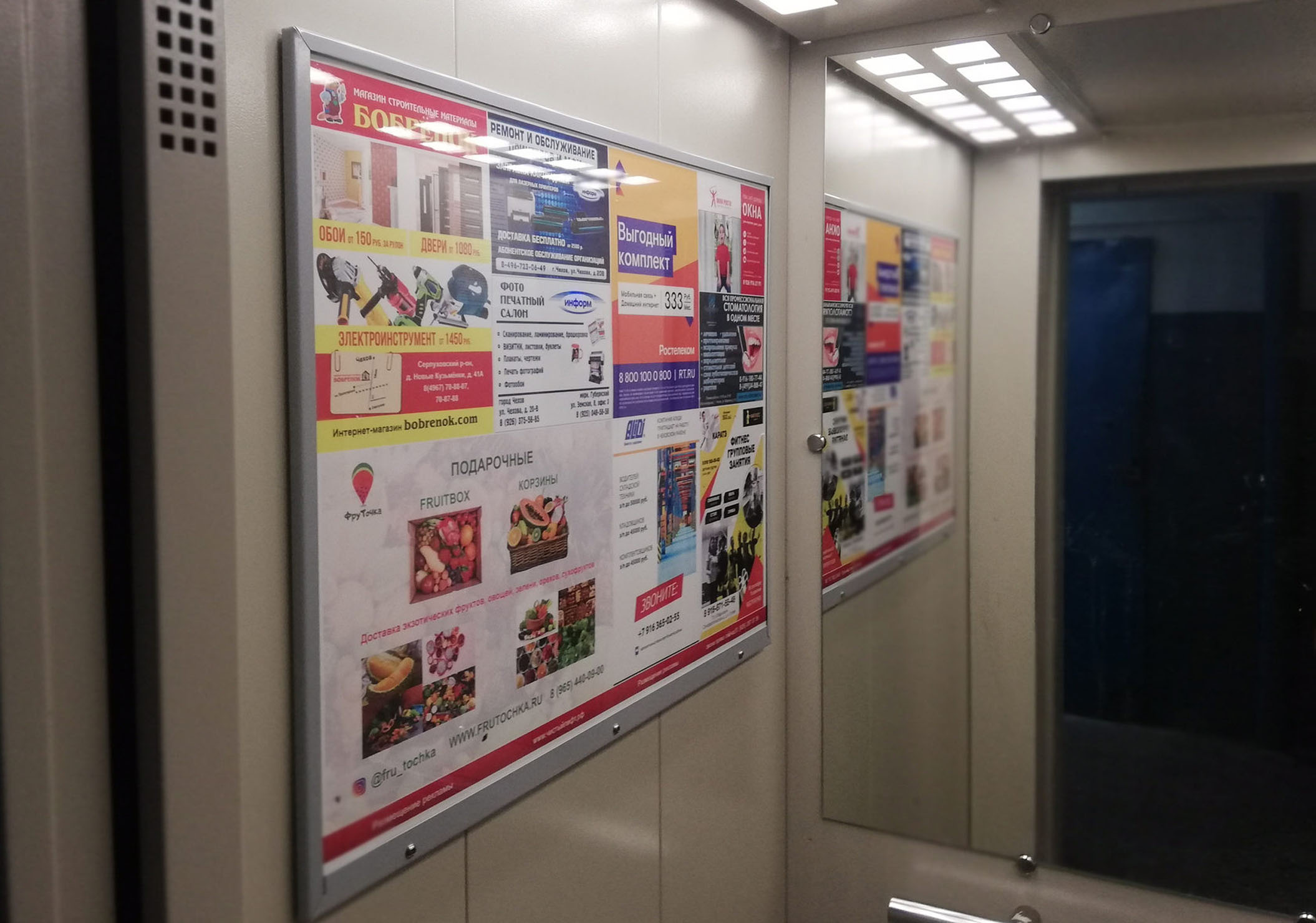 Реклама в лифтах является эффективным средством для увеличения потока клиентов и повышения процента продаж. Многие клиенты нашего рекламного агентства используют рекламу в лифтах на постоянной основе, добиваясь при этом высоких результатов.